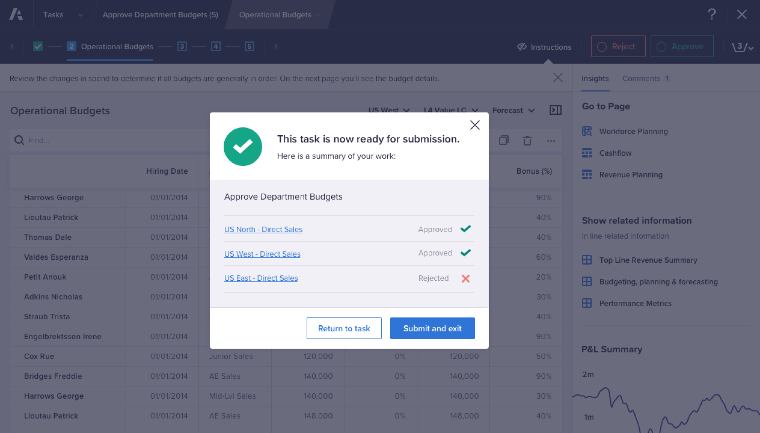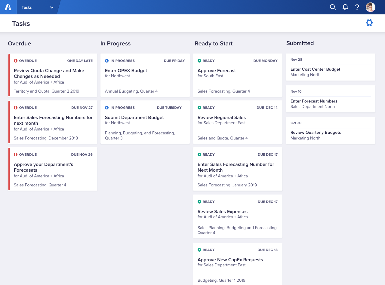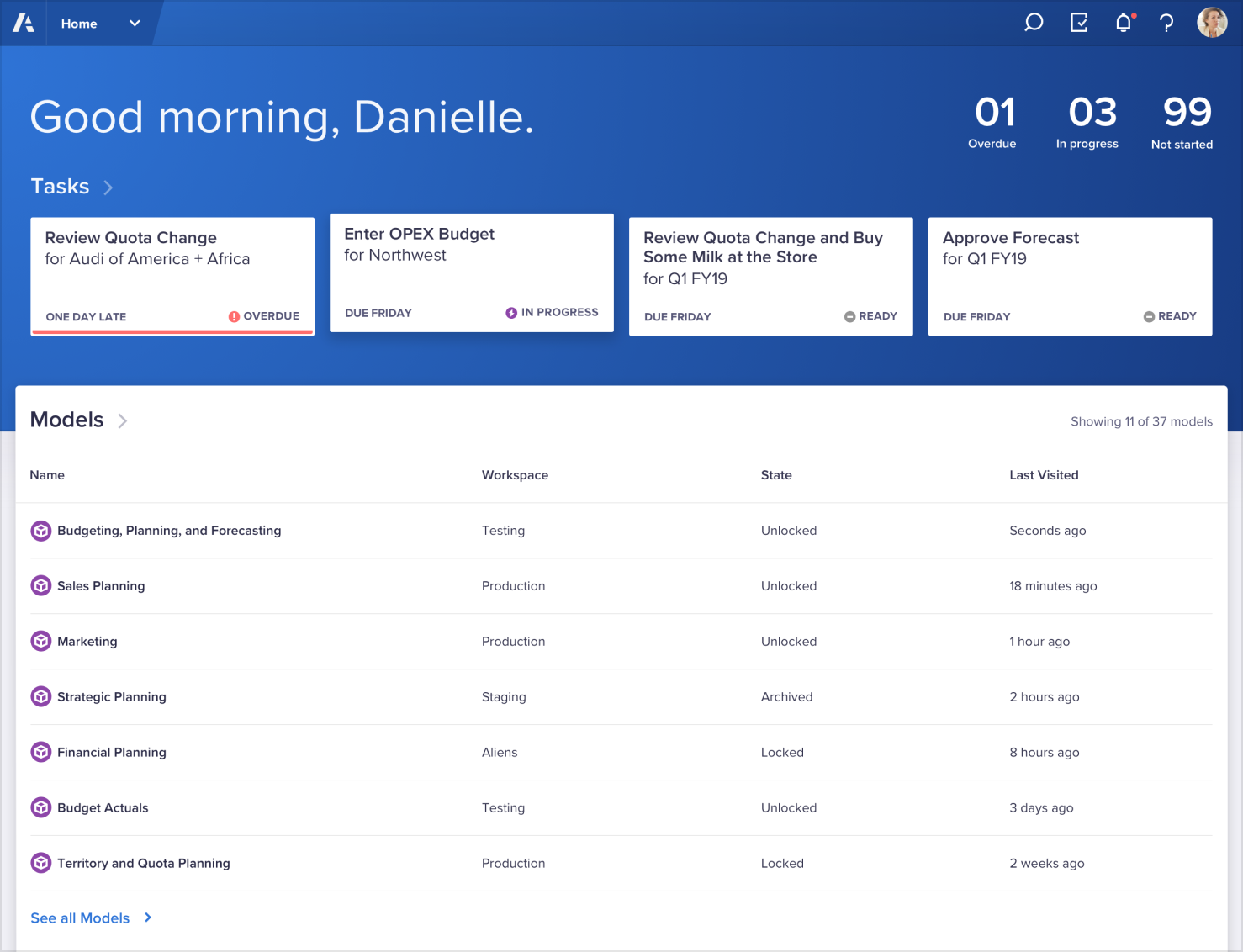 Consisting of a “builder” experience and an “execution” experience, workflow helped guide end users in entering data into Anaplan and helped get that data right via approvals.