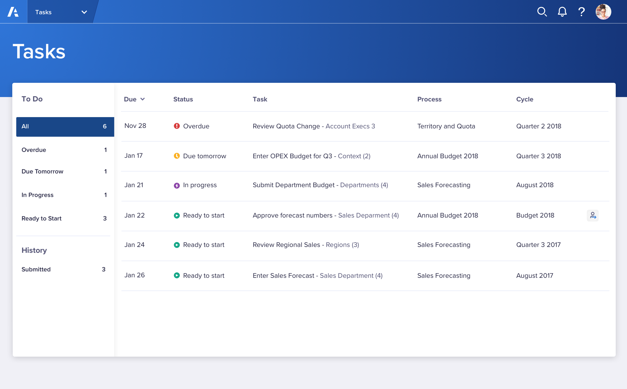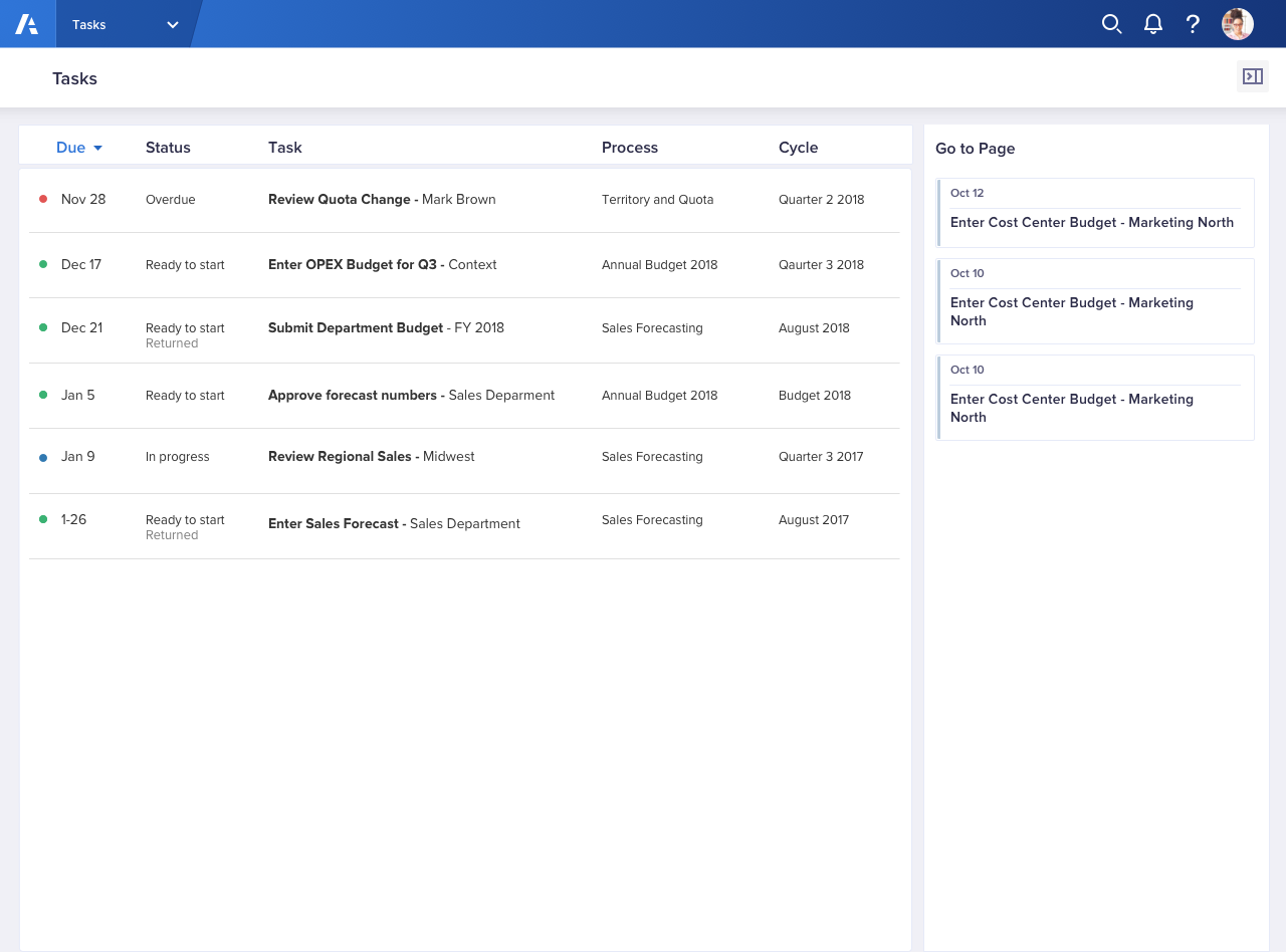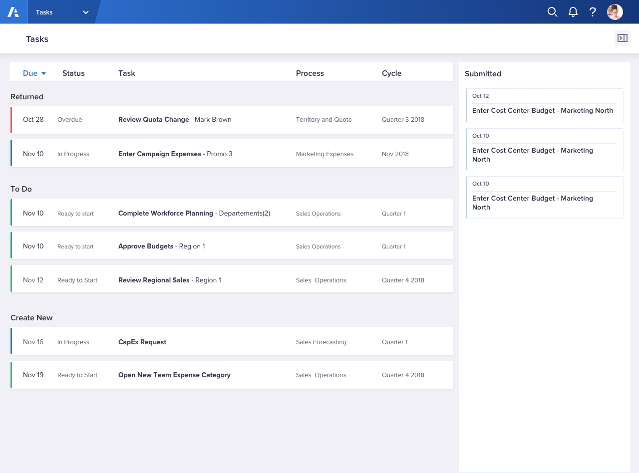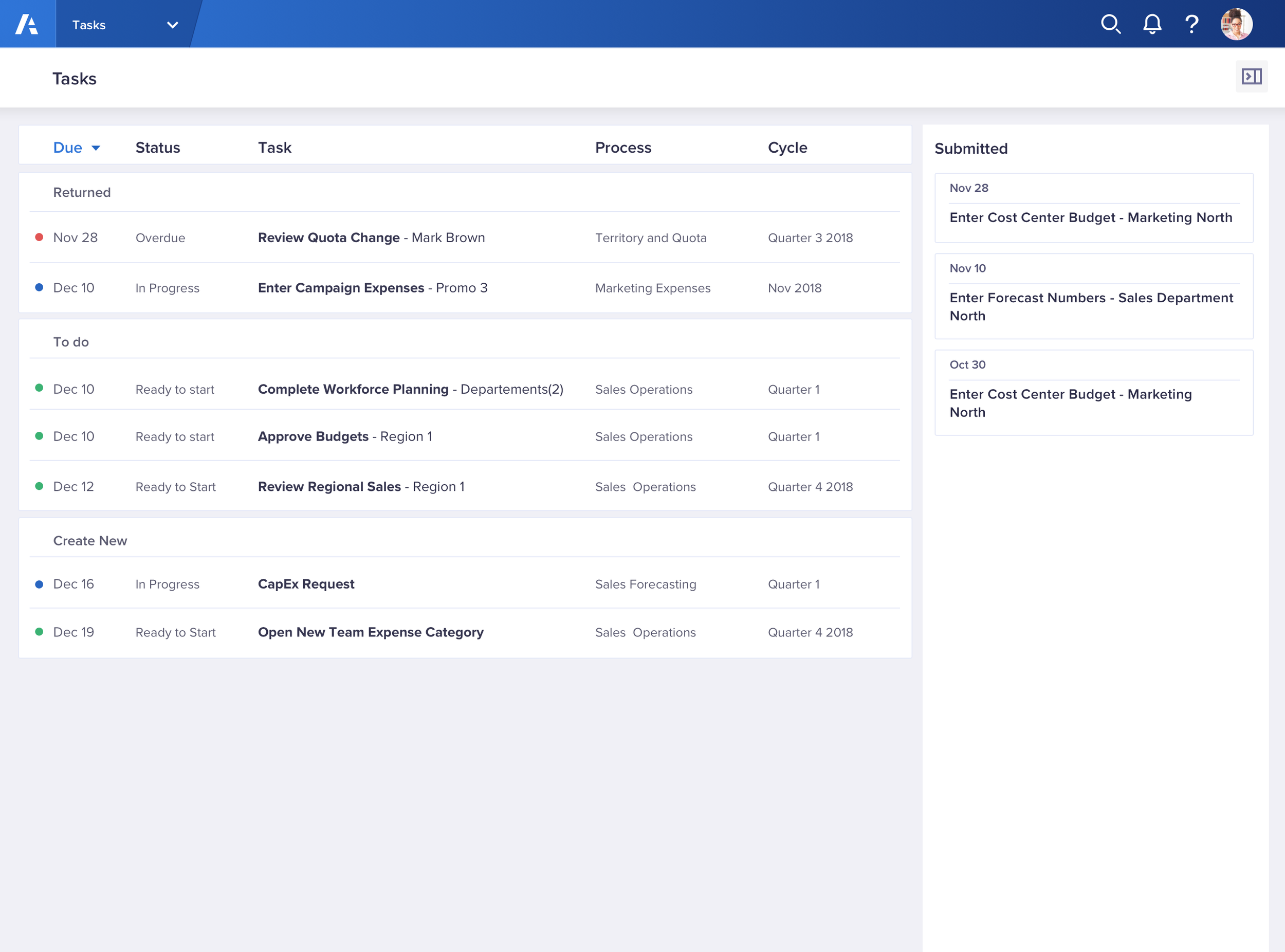 Consisting of a “builder” experience and an “execution” experience, workflow helped guide end users in entering data into Anaplan and helped get that data right via approvals.