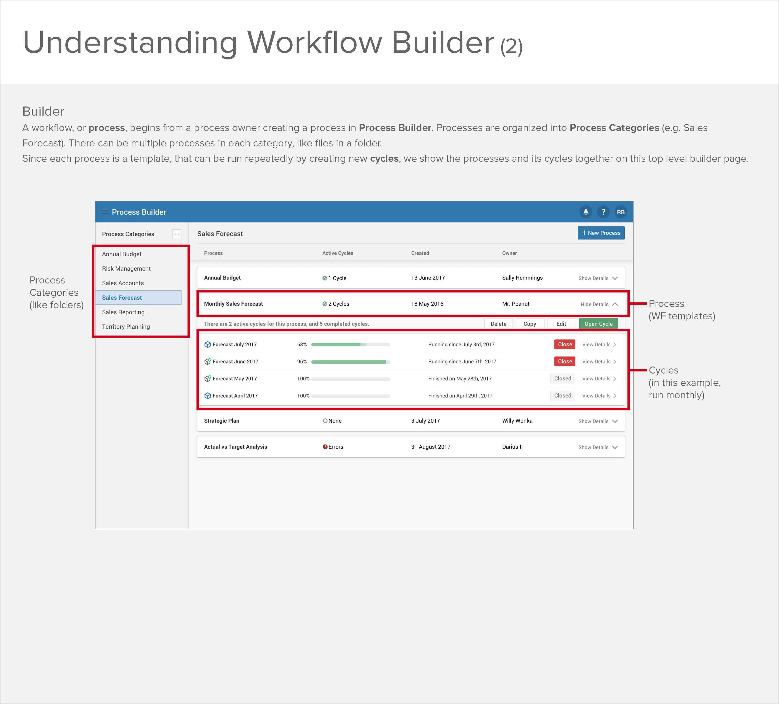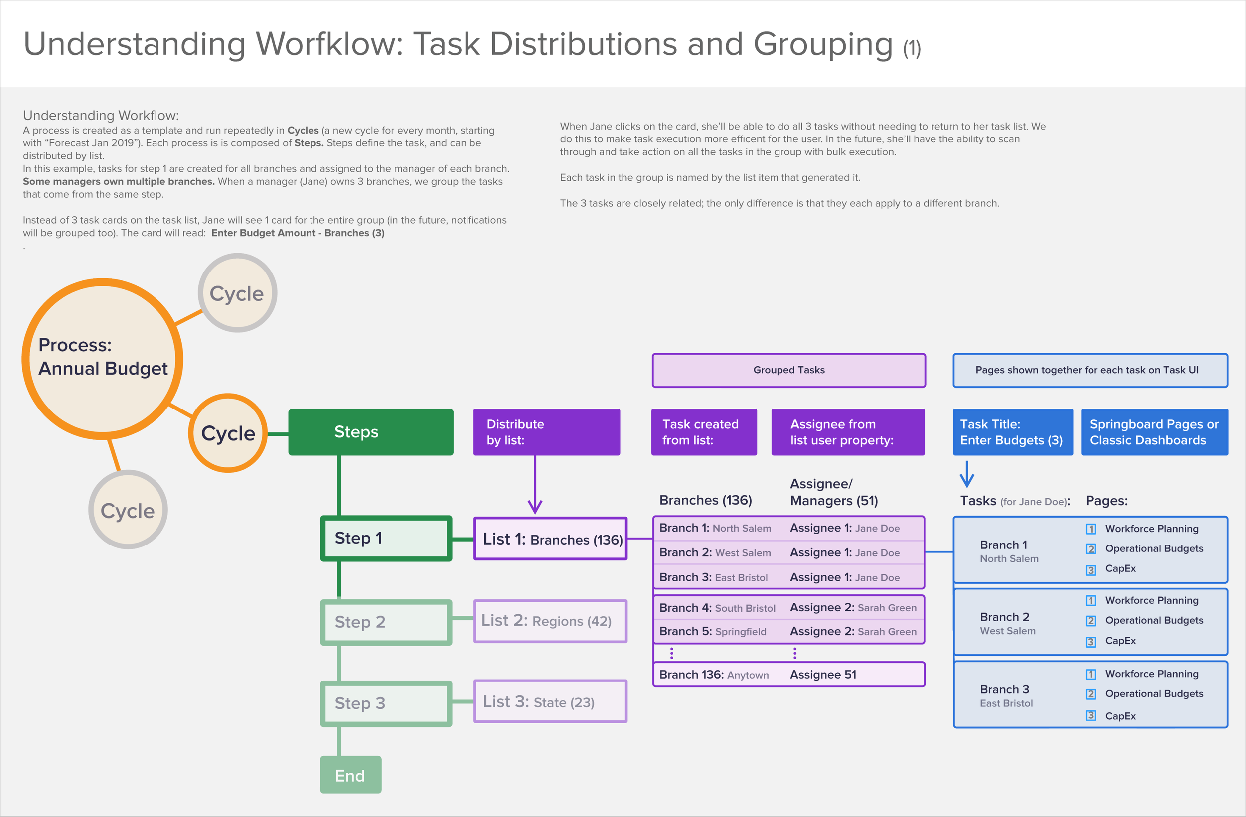 As workflow was a very complex project, I created a series of documents to help both my understanding, and that of my immediate team (development, PM, and UX counterpart (for workflow builder).