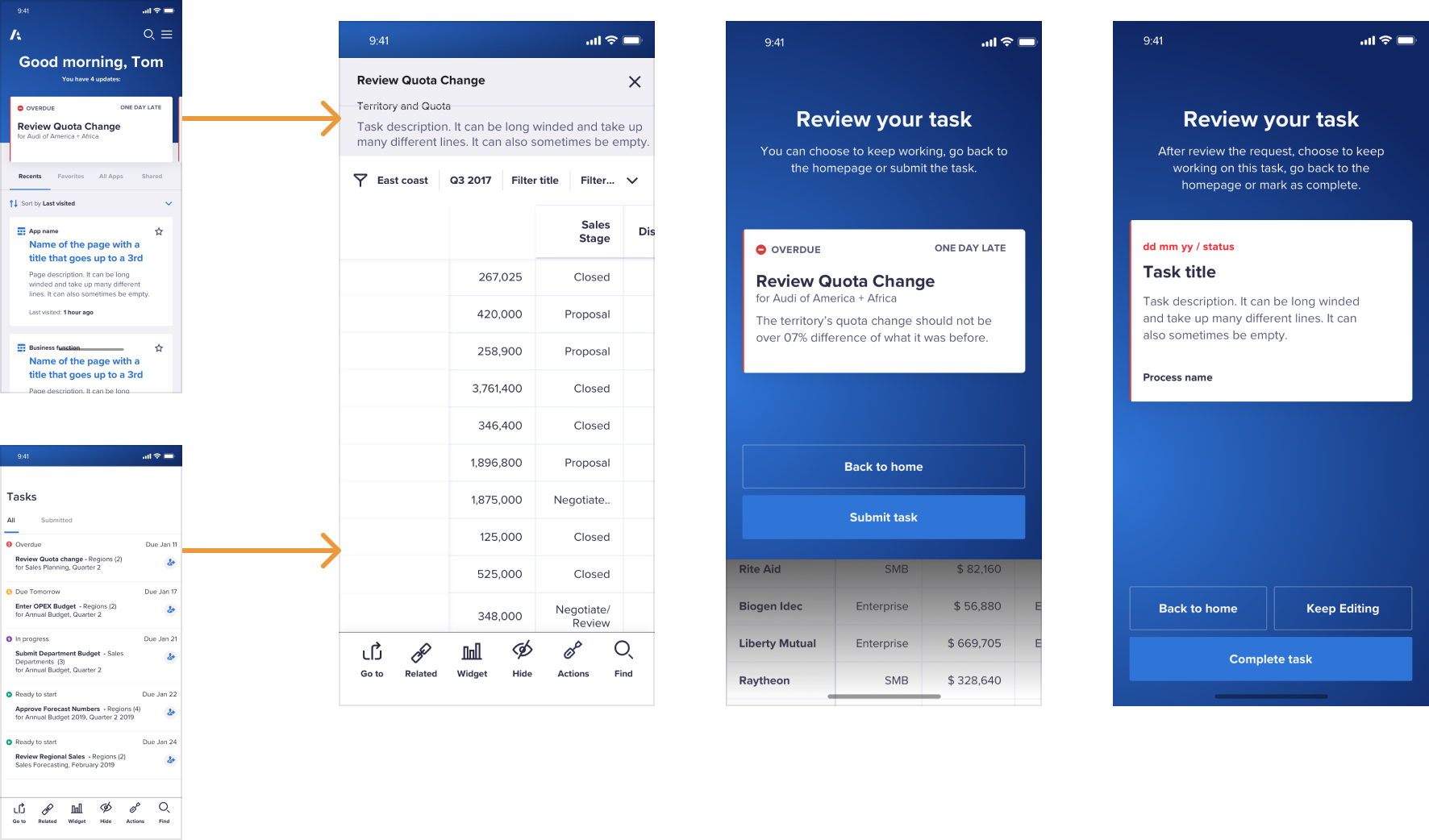 The “shopping cart” view I designed provided the ability to multi-approve or reject a distributed task (see supporting work below for distributed tasks).